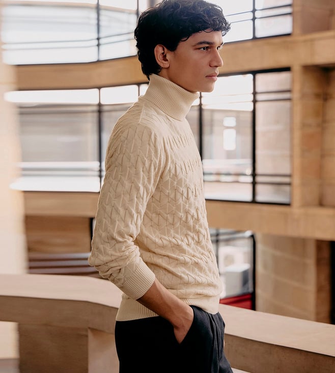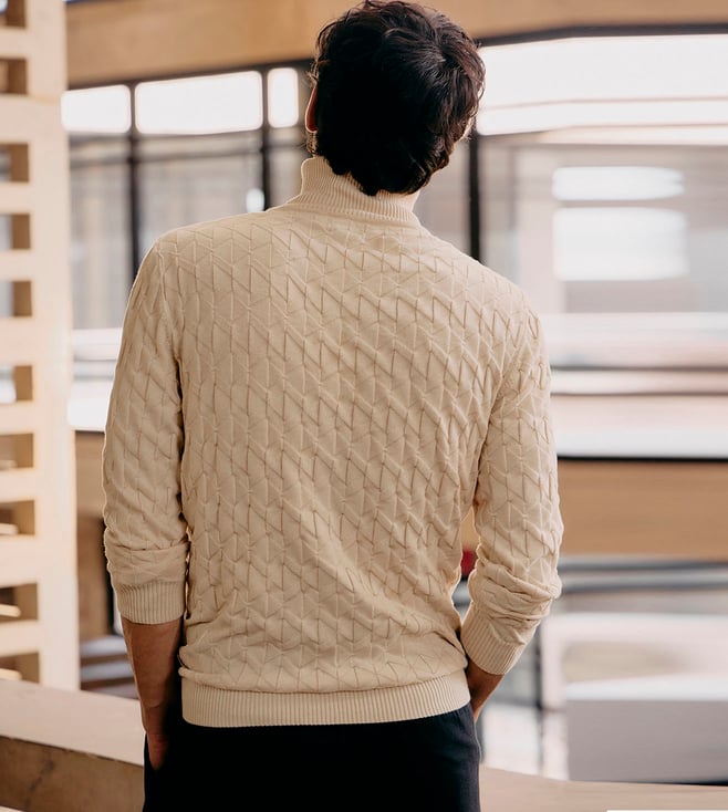 Andamen Off-White Structured Fabric Cotton Triblend Flat Knit Regular Pullover