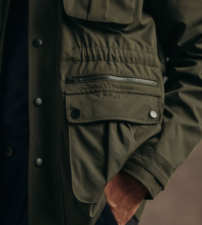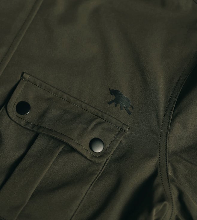 Mid-weight poly twill jacket built with multiple pockets and utilitarian drawstring details. Features an HD print of our iconic mascot.