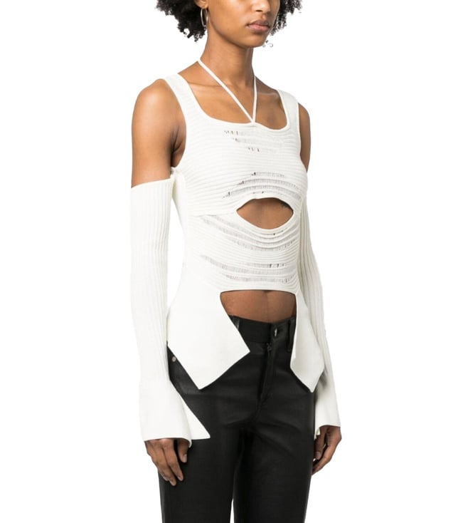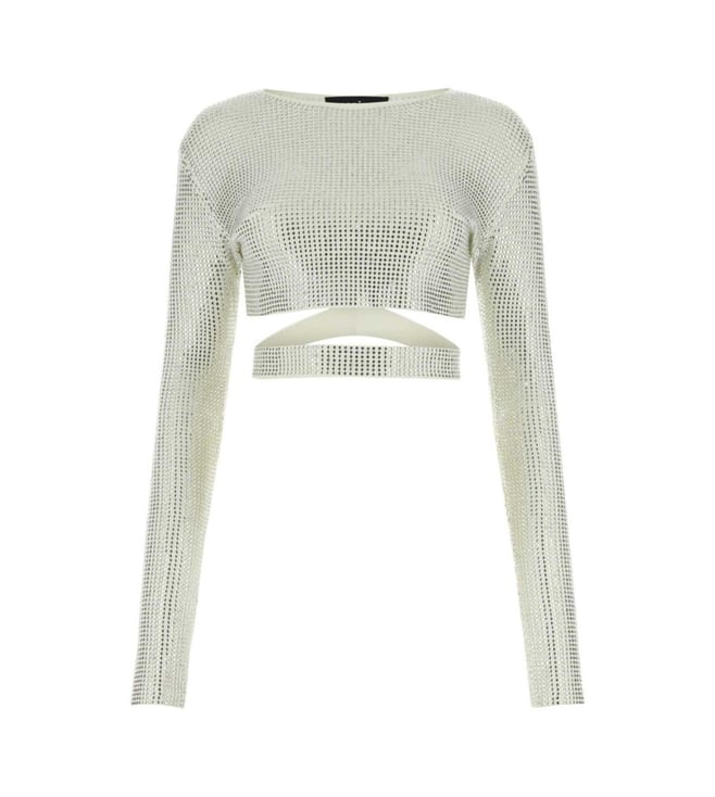 Ivory White Embellished Viscose Top