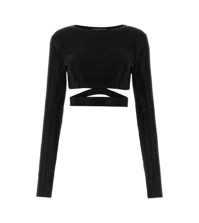 Black Embellished Viscose Blend Top