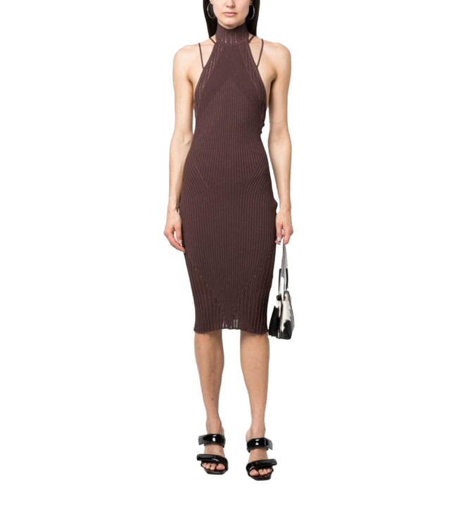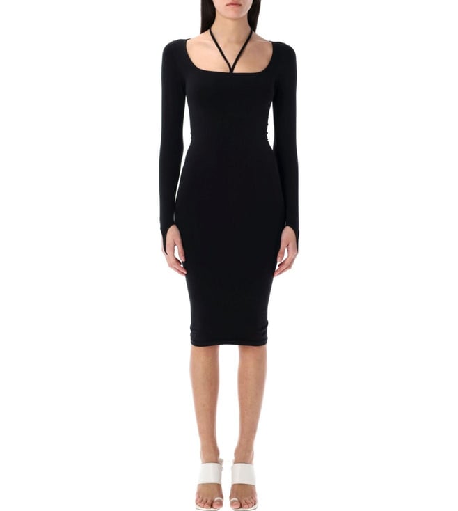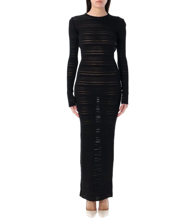 Black Sheer Knit Long Slim Fit Dress