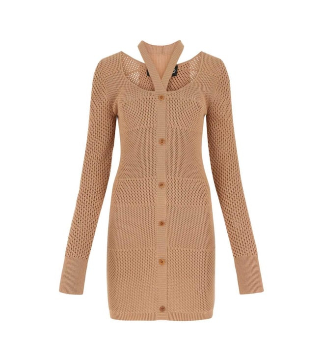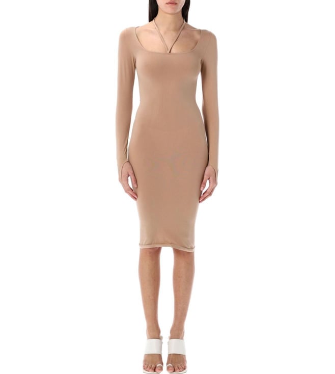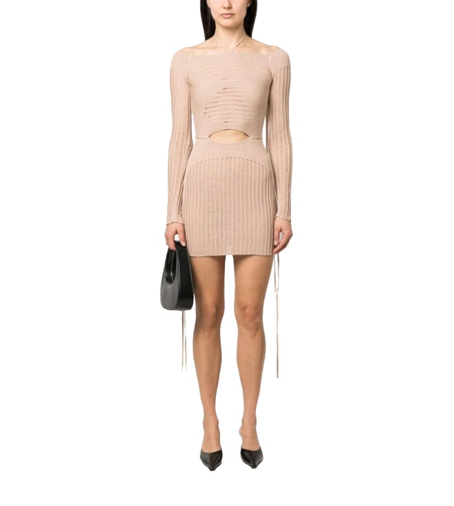 Beige Sequin One Shoulder Embellished Dress