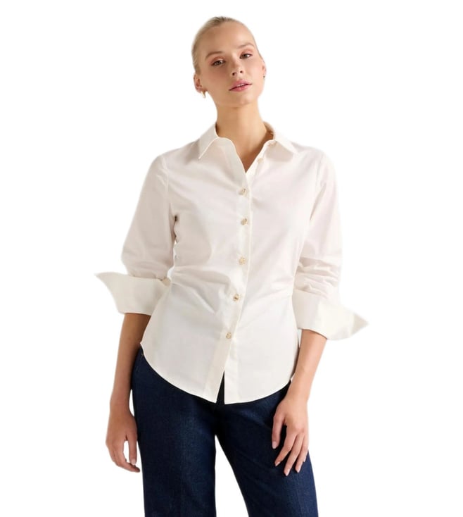 Elevate your wardrobe with the Forever New Ange Slim Fitted Shirt, a versatile piece that seamlessly transitions from office to evening. Crafted with premium materials, this shirt offers a flawless fit that accentuates your silhouette. The timeless design exudes sophistication and elegance, making it a must-have staple for any fashion-forward individual. Step out in style and confidence with the Ange Slim Fitted Shirt, the perfect blend of comfort and sophistication.
