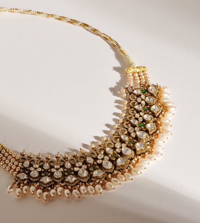 Silver 92.5 Sterling Silver With Gold Polish Trishala Choker Necklace