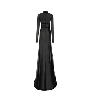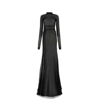 Embrace timeless elegance with this stunning black dress, crafted from a luxurious blend of 82% cotton and 18% polyamide. The solid pattern exudes sophistication, while the long sleeves and high neck add a touch of classic refinement. Designed for the modern woman, this dress offers a sleek silhouette that flatters every curve. The discreet closure ensures a seamless fit, making it perfect for any occasion where style and grace are paramount. Step into a world of chic allure with this wardrobe essential.