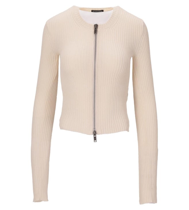 Beige Terna Cropped Zip-Up Cardigan
