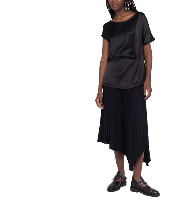 Black Asymmetrical Silk Blouse