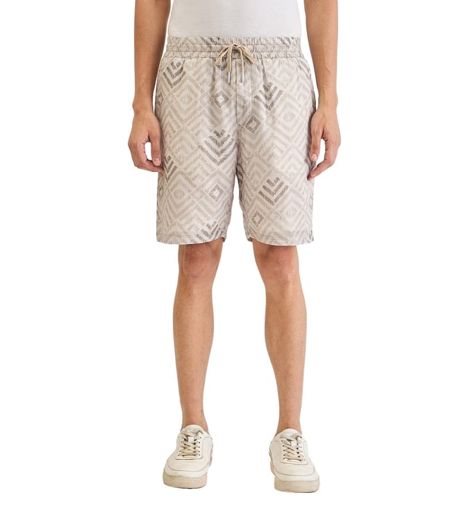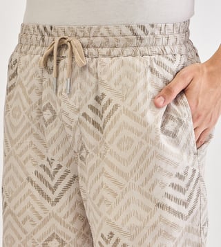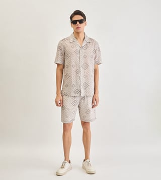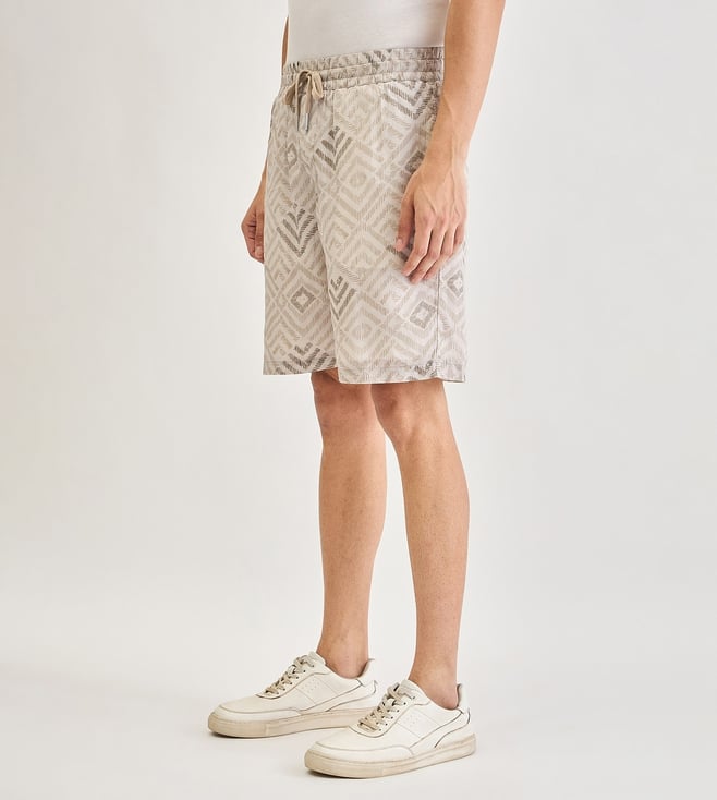 Elevate your summer wardrobe with these stylish men's shorts, featuring a sleek slim fit and a captivating geometric pattern in a versatile beige hue. Crafted from a premium blend of 55% cotton and 45% ramie, these shorts offer a perfect balance of comfort and durability. The breathable fabric ensures you stay cool, while the modern design adds a touch of sophistication to any casual ensemble. Ideal for both relaxed weekends and chic outings, these shorts are a must-have for the fashion-forward man.