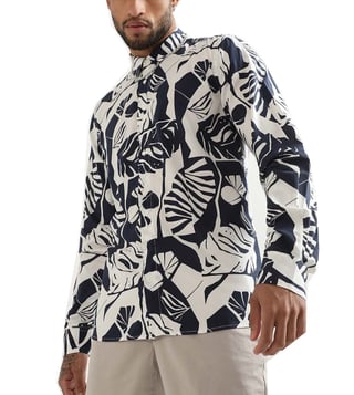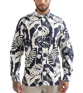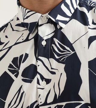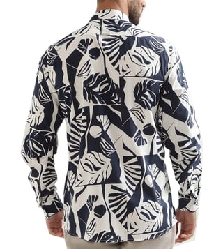 Long-sleeved regular straight fit shirt made of printed cotton viscose blend fabric.To characterise this model is the palm print that contrasts against the entire silhouette. Visible buttoning, logo plate on the back and a straight-cut design complete this garment that evokes exotic destinations and summer vibes