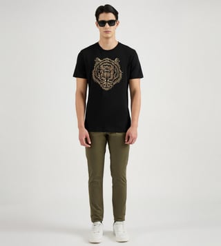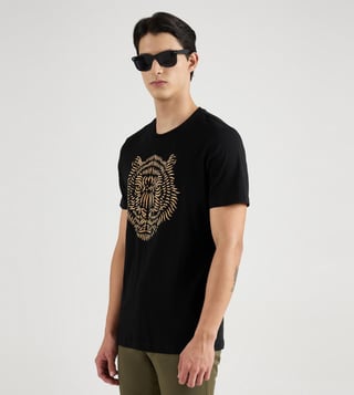 Urban men with an eye for standout outfits will surely fall for this T-shirt. Featuring a round neckline and short sleeves, it is adorned with a cool placement print. The soft fabric further promises all-day comfort. You can wear it with a pair of distress jeans or flat-front trousers.