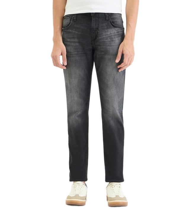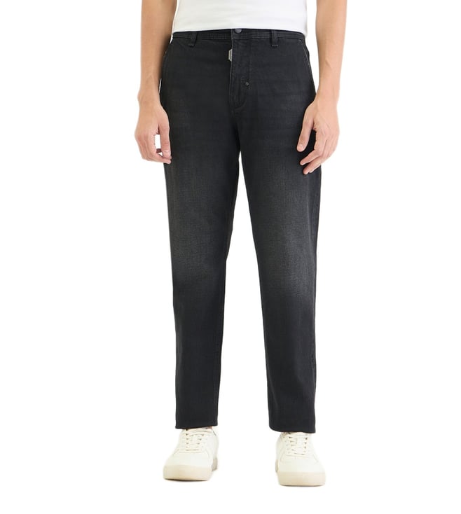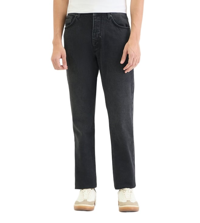 Men Straight Fit Black Solid Pure Cotton Jeans