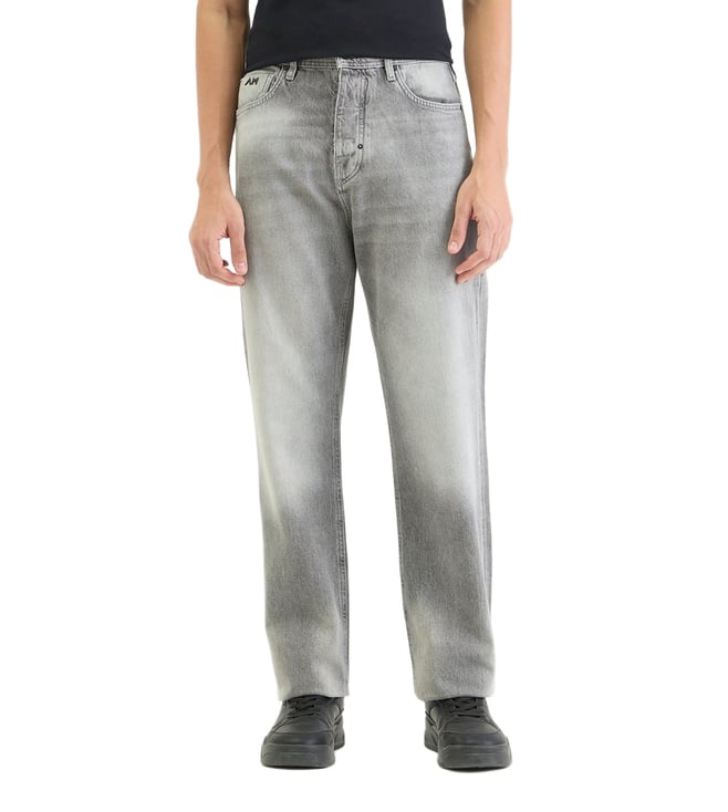 Men Straight Fit Grey Solid Pure Cotton Jeans