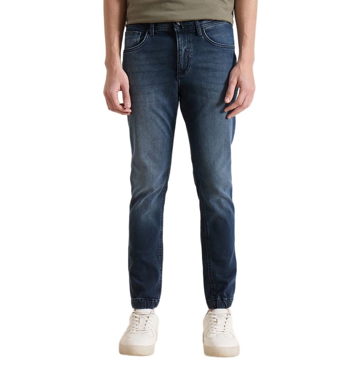 Men Tapered Fit Navy Blue Solid Jeans