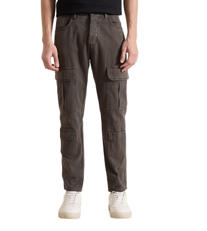 Men Tapered Fit Charcoal Black Solid Jeans