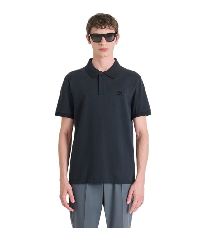 Men Navy Blue Jersey Cotton Polo T-Shirt