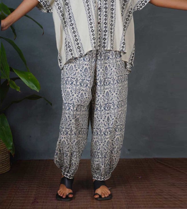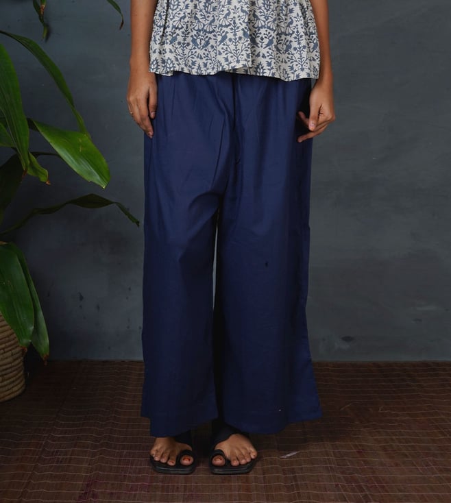 Indi Virari Blue Hand Block Print Cotton Pant