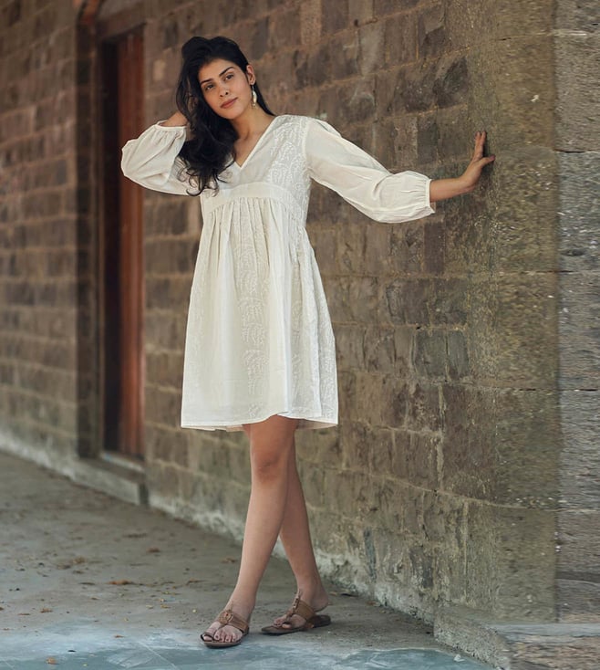 Safed Mist on Marble Ivory Block Printed Dress