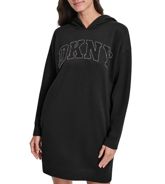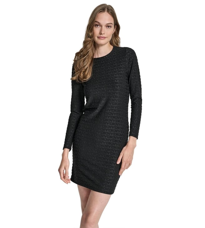 Black-Blk Regular Fit Embellished Logo Long Sleeves Dress