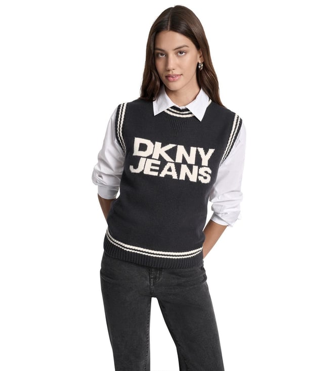 Black-Eggnog Regular Fit Solid Sleeveless Sweater