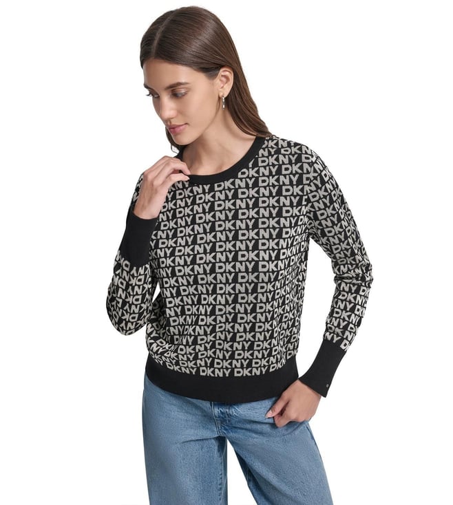 Black-Eggnog Regular Fit Printed Long Sleeves Sweater