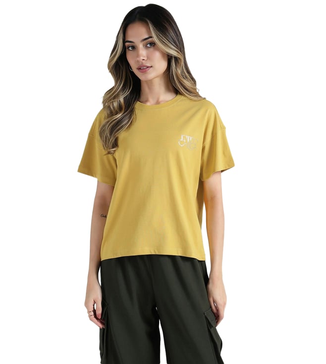 Women Yellow Solid Crew Neck Pure Cotton T-Shirt