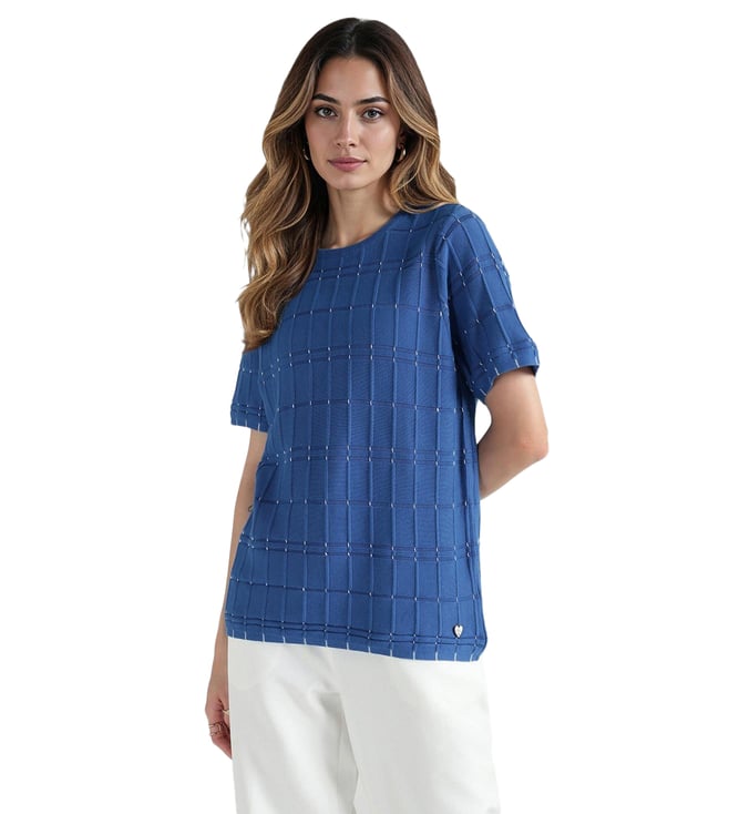 Women Brown Geometric Pattern Collar Pure Cotton T-Shirt