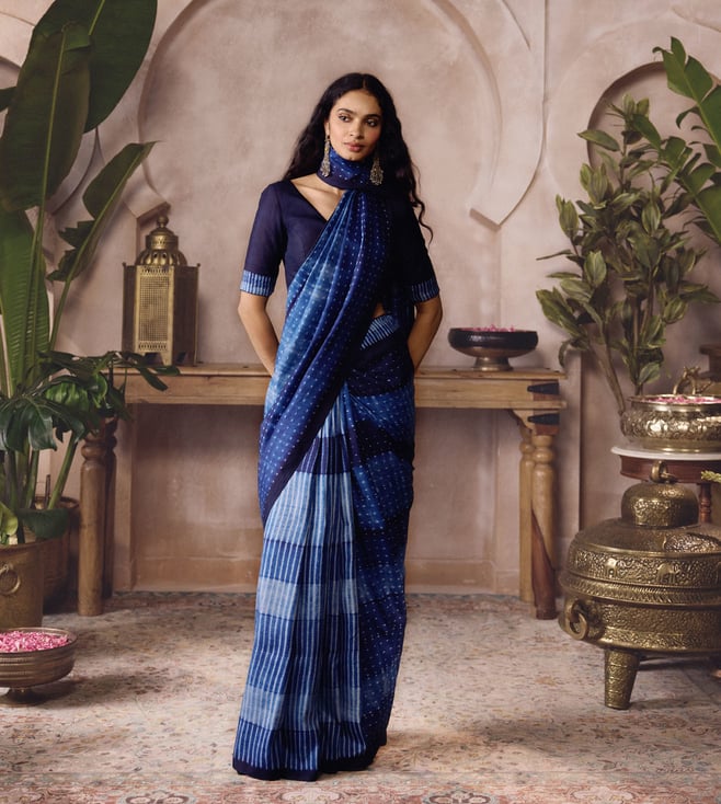 Grassroot Blue Striped Three-Quarter Sleeves Jacket Set