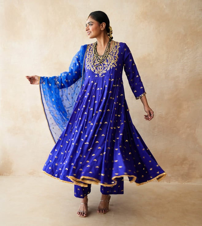 Off White Summersky Abaya Anarkali With Pant And Dupatta