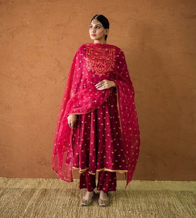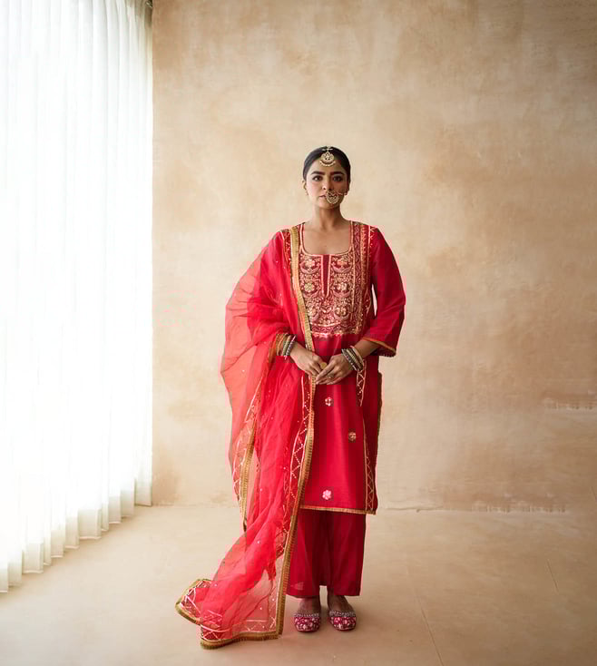 Bahaar Red Kurta with Sharara and Dupatta