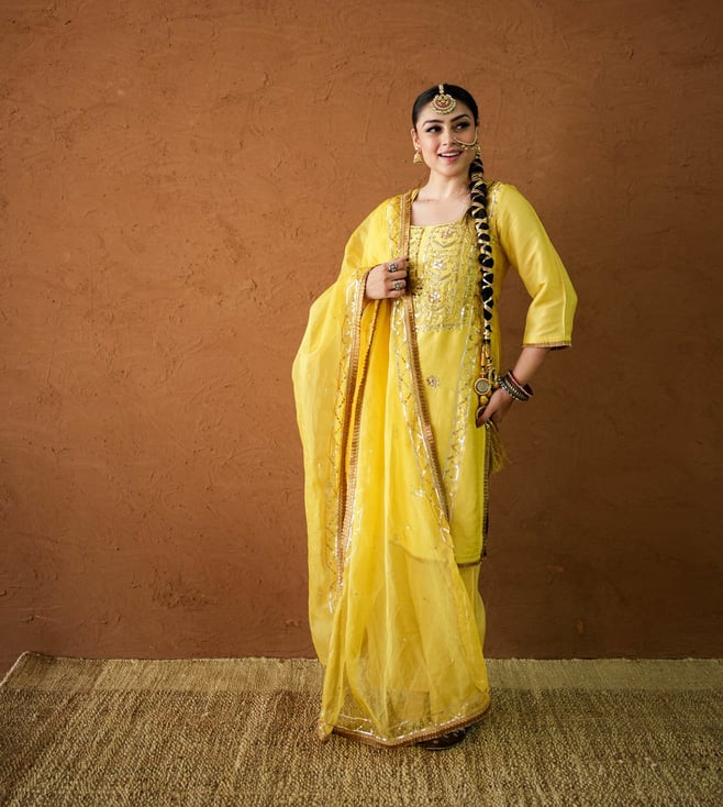 Bahaar Yellow Kurta with Sharara and Dupatta