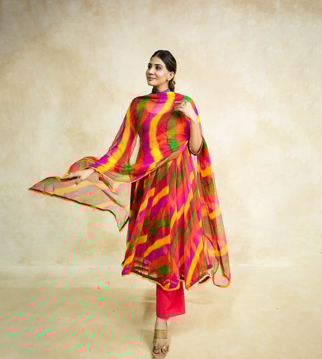 Emerald Green Guldasta Shubha Anarkali Kurta with Palazzo and Dupatta