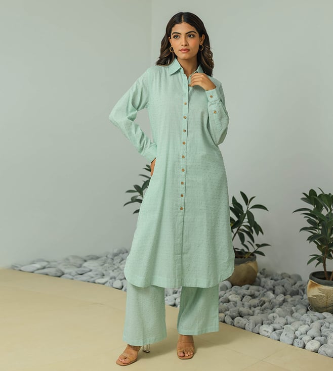 Green Floral Tunic With Palazzo (Set Of Two)