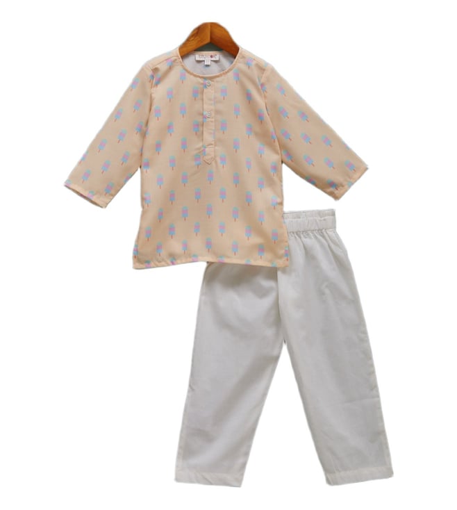 Cream Sweet Dreams Printed Regular Fit Kurta Pant Set