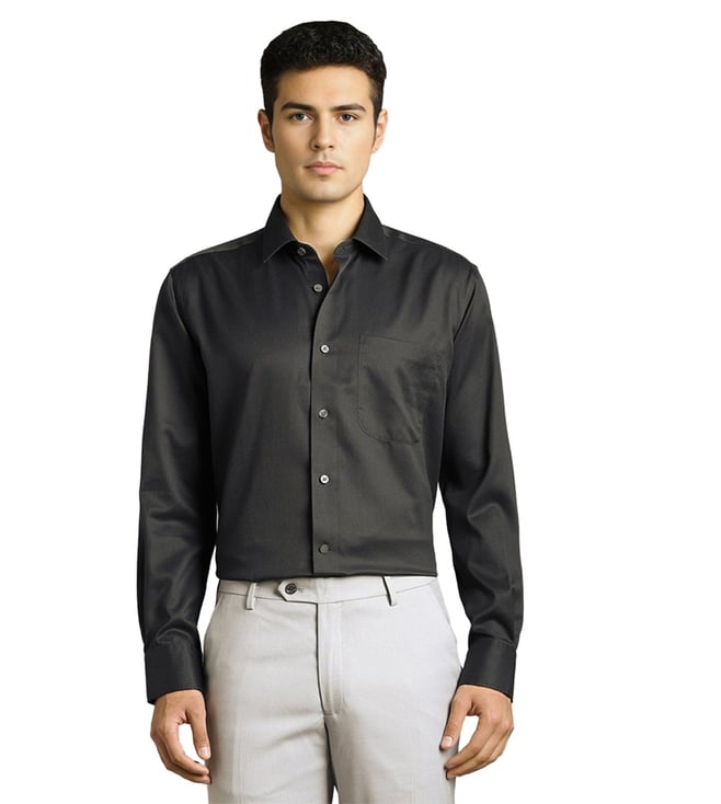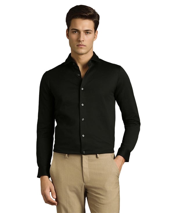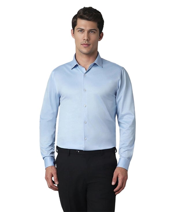 Men Solid Cotton Slim Fit Formal Wrinkle Free Permapress Shirt