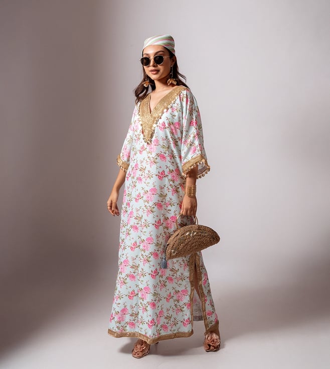Blue Dua Mughal Boota Kaftan with Pant