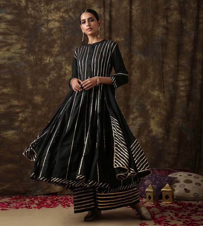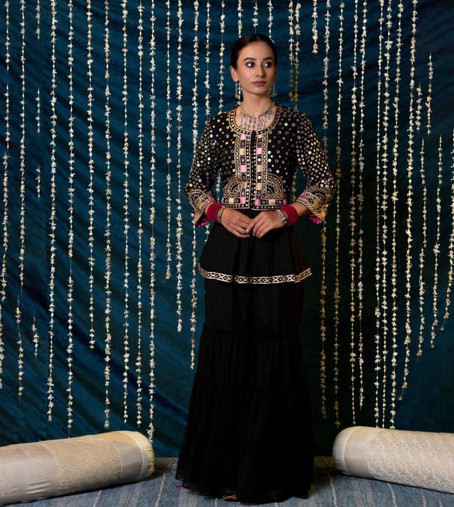Black Dua Block Printed Kurta with Sharara and Dupatta