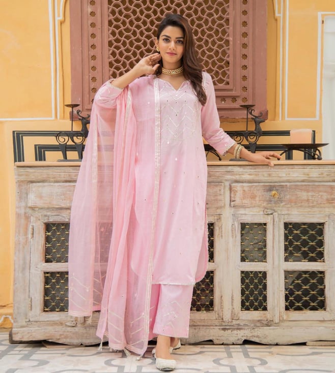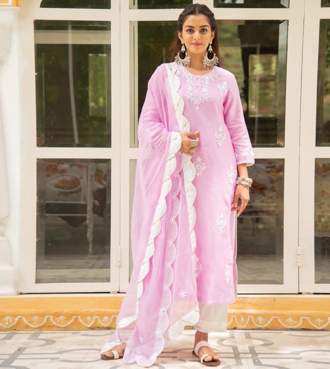 Ivory and Pink Hand Block Printed Suit Set