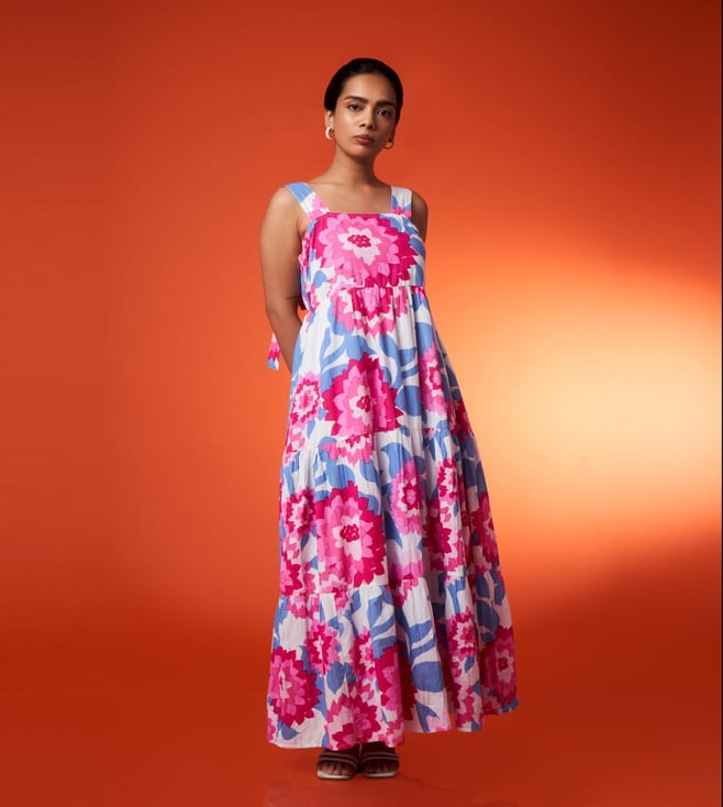 Turquoise Good Times and Tan Lines Goergia Printed Rayon Maxi Dress