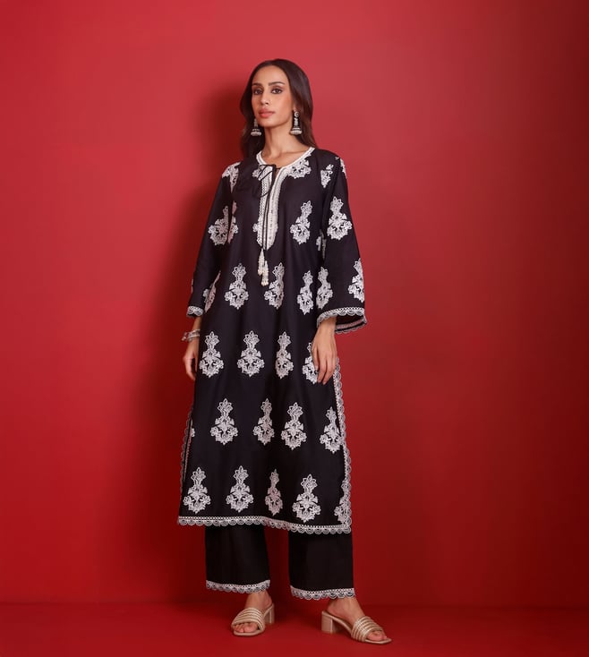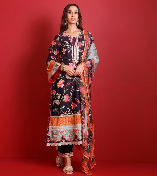 Black Satin Regular Fit Kurta with Pant & Dupatta