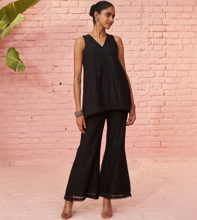 Black Rehanshi Top with Pant Co-ord Set