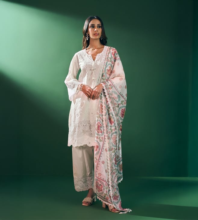 Off White Supima Cotton Kurta with Pant & Dupatta