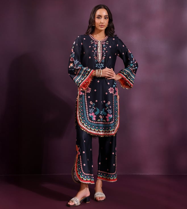 Black Satin Regular Fit Kurta with Pant & Dupatta