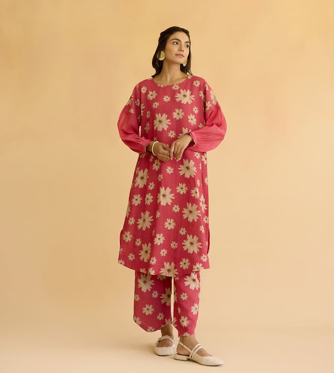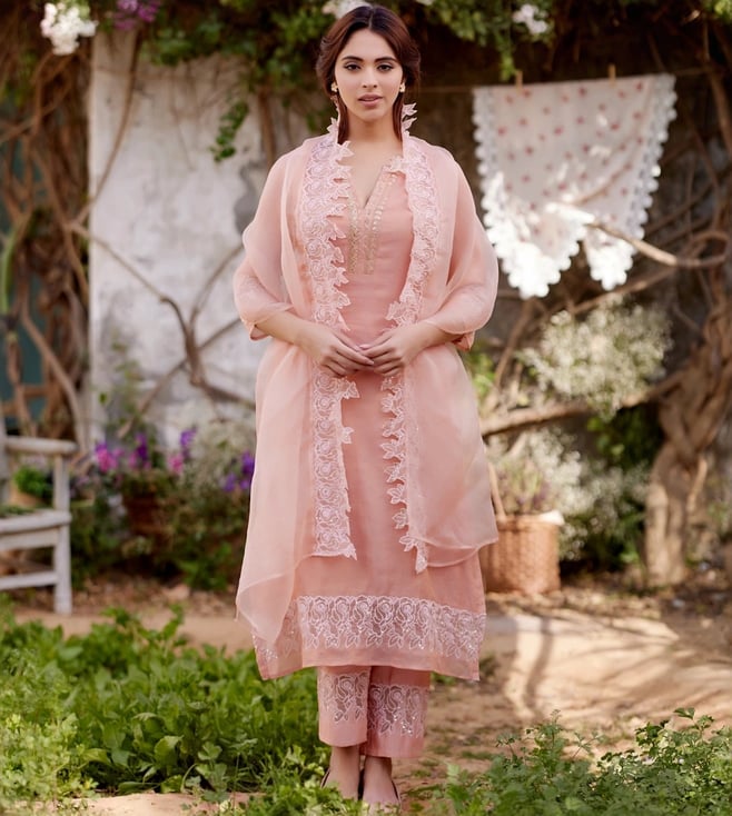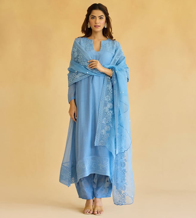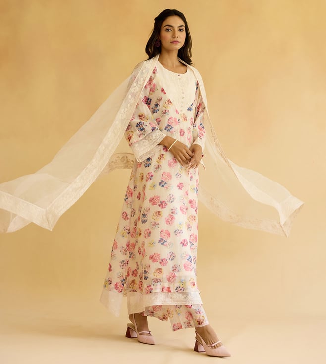 Multi Color Cotton Chanderi Comfort Fit Kurta,Pant And Dupatta Set