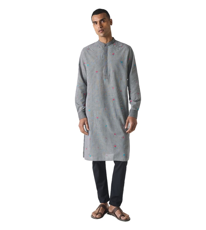 Neckband Kurta - Black & White Embroidered