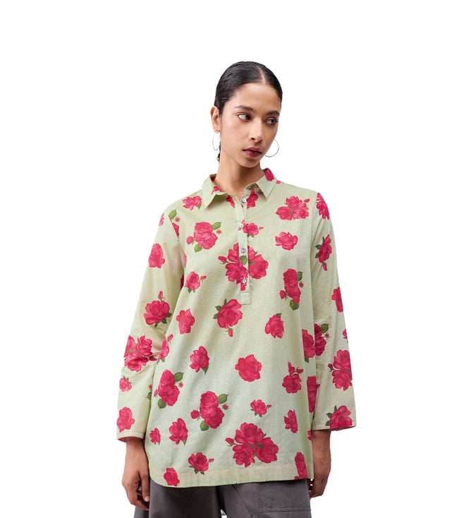 High Low Short Kurta - Mint & Watermelon Print