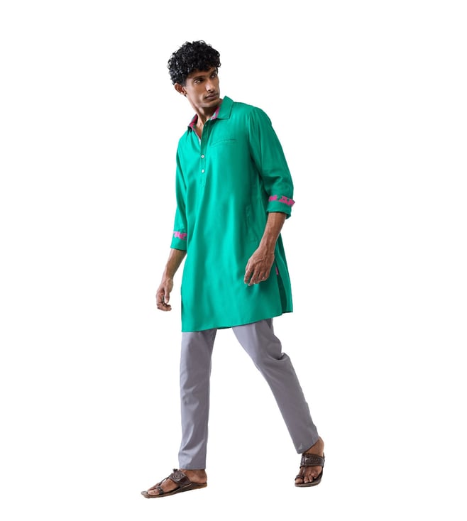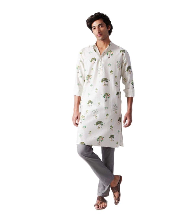 Astral Kurta - Ivory & Green Printed