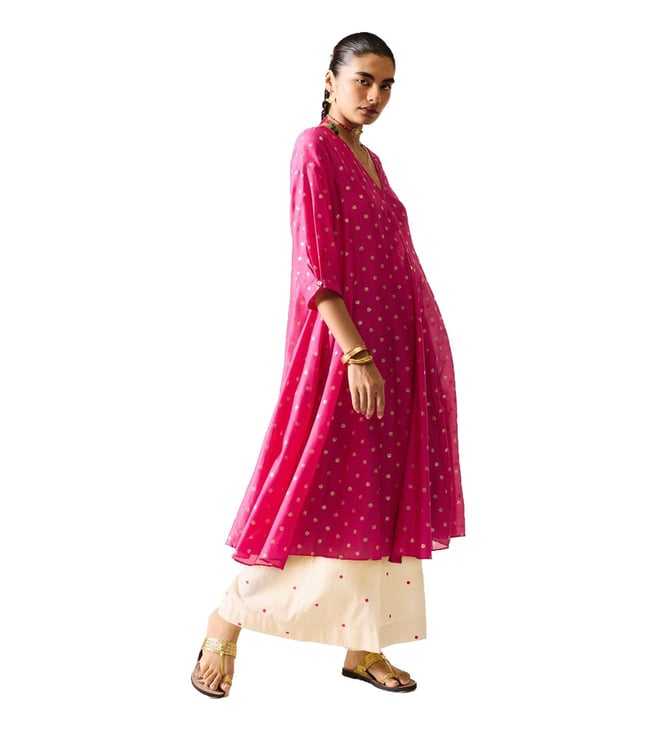 Kannauj Kurta - Fuchsia & Gold Printed
