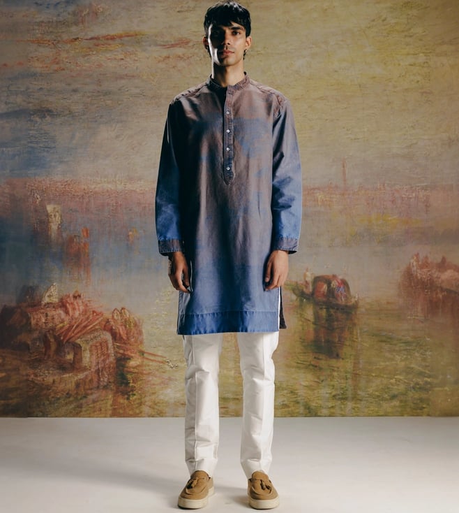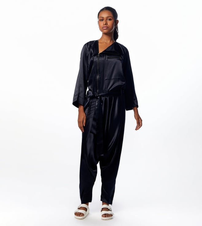 Deep Sky One-Shoulder Sari Top with Saree Draped Skirt Co-ord Set