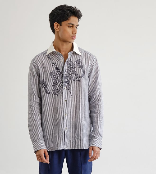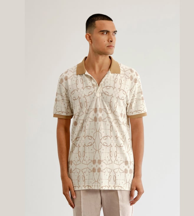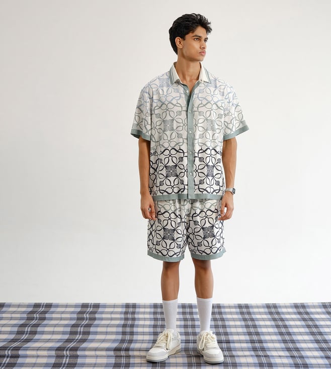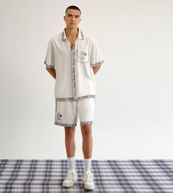 Off White Cotton Linen Relaxed Fit Botanical Horse Resort Co-Ord