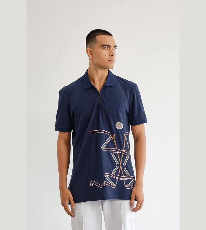 Dark Sapphire Supima Cotton Pique Relaxed Fit Equestrian Knot Polo